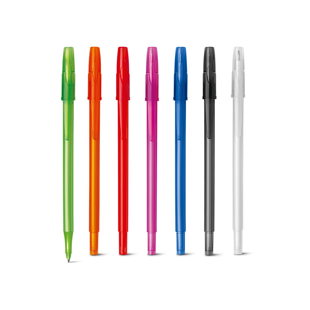 Esferográfica em PP com acabamento frost. Até 1,5 km de escrita.