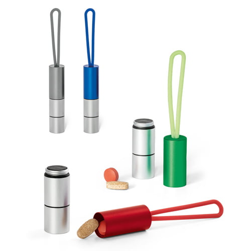 Lanterna em alumínio com 1 LED, porta comprimidos e fita em silicone. Incluso 3 pilhas LR44.